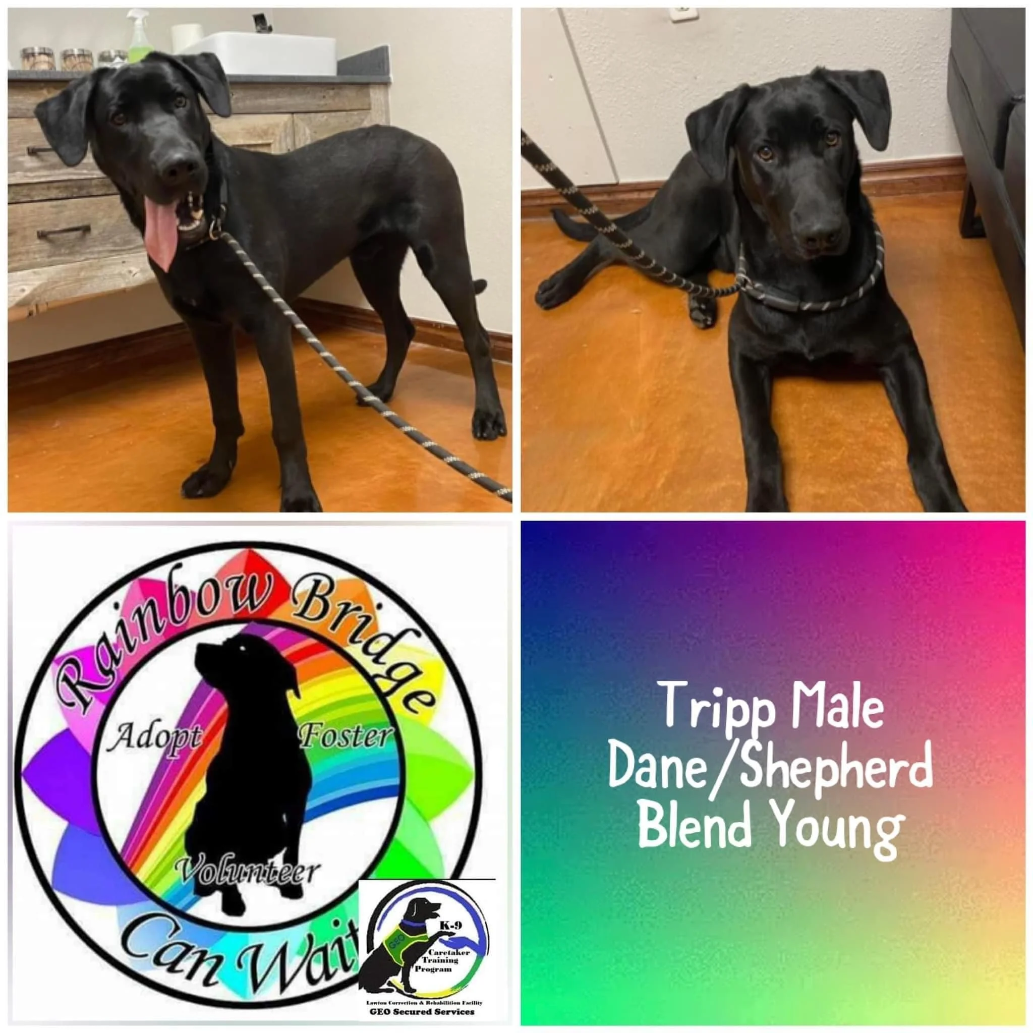 Tripp is young German Shepherd/Great Dane blend. He is a big goofy boy that doesnt always know his size. He does well with other dogs and loves people. He can do great with children but do to being young, large, and energetic, it is advised to be cautious with small children around.